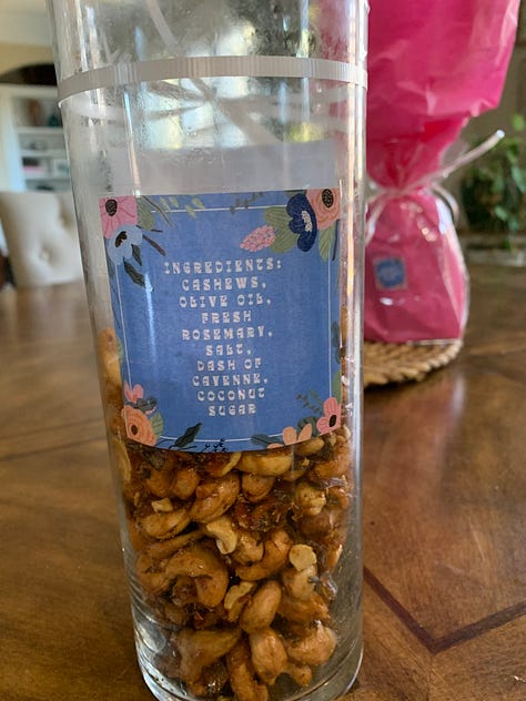 Hand-roasted rosemary cashews (my daughter Natalie is quite the culinarian)