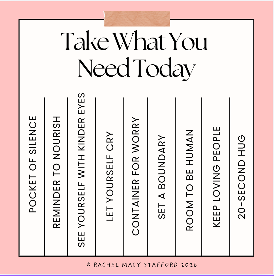 P.S. I made a Take What You Need printable for you with each of the permissions from this offering turned into tear-off strips. My hope is that having something tangible to hang up will feel like a small, steady kind of support this February.