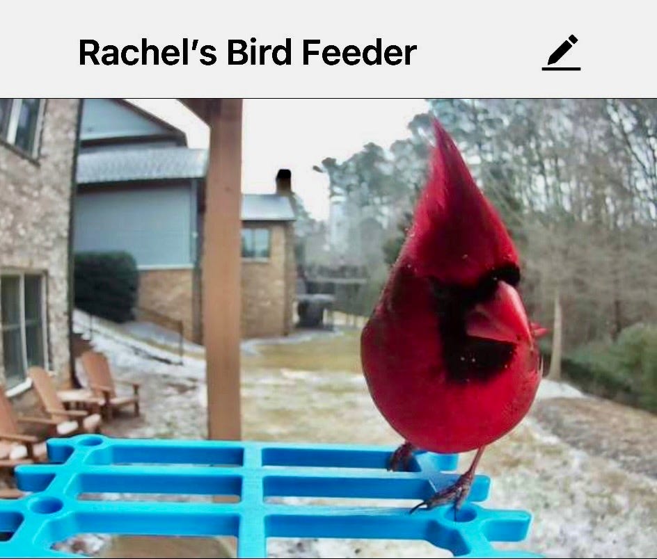 And Rudy the red cardinal comes every day at dusk.